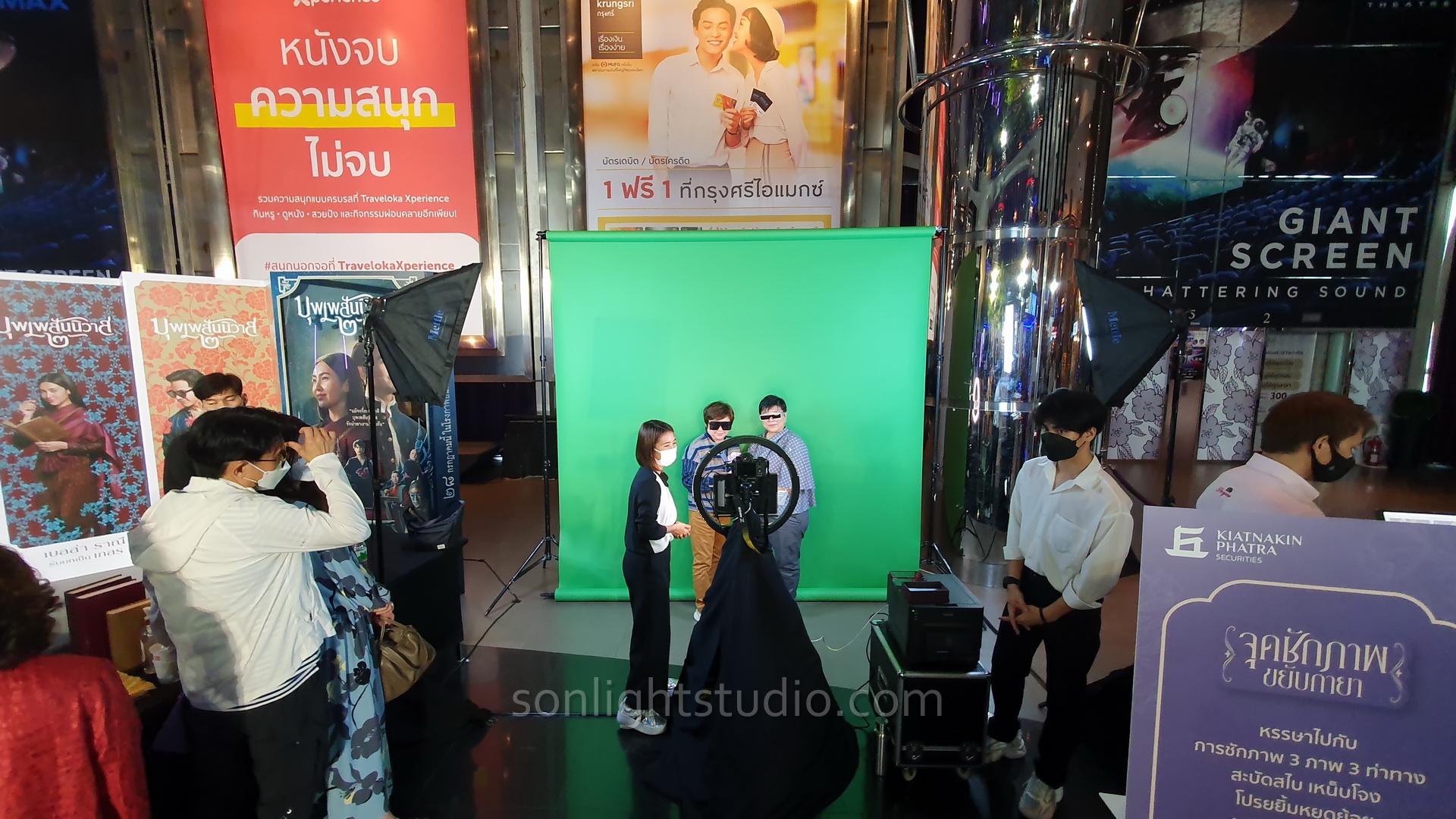 ทีมงาน Sonlight Studio ได้จัดเตรียม ฉากเขียว Green Screen แบบผ้า ขนาดกว้าง 6 เมตร โดยมีความสูงของฉากหลัง 2.5 เมตร และความลึกของผ้าส่วนที่ปูพื้น 2.5 เมตร ซึ่งเป็นขนาดที่เหมาะสมกับการใช้งานในห้องประชุมขนาดกลางถึงใหญ่ และสามารถรองรับการยืนของผู้บรรยายสองท่านได้อย่างสบาย โดยมีทีมงานถ่ายทอดสดขนาดใหญ่กว่า 10 คน เข้ามาดูแลระบบภาพ ระบบเสียง และระบบไฟส่องสว่างทั้งหมด ทำให้มั่นใจได้ว่างานสัมมนาออนไลน์ครั้งนี้จะออกมามีคุณภาพสูงสุด