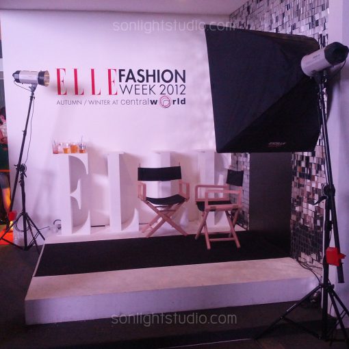 - ไฟแฟลช 2 ดวง พร้อม Softbox ถูกจัดวางด้านซ้ายและขวา เพื่อสร้างแสงที่นุ่มนวลและสวยงามทั่วทั้งตัวแบบ ช่วยลดเงาที่แข็งกระด้างและขับเน้นมิติของใบหน้าและร่างกาย