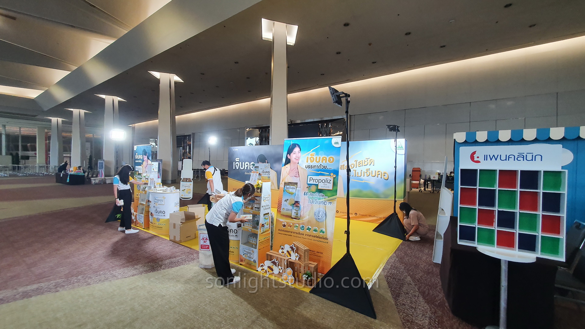 - อีก 2 ดวง ใช้ส่องกระจายแสงในบริเวณหน้างานและจุดลงทะเบียน เพื่อให้พื้นที่ดูสว่างไสวและเป็นระเบียบ