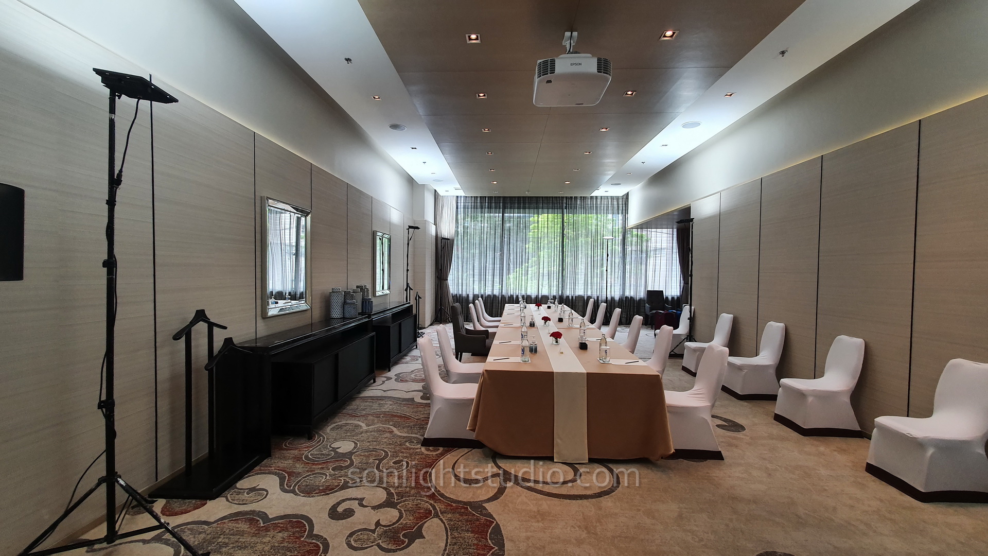การเลือกใช้ ไฟสปอร์ตไลท์ LED 100 วัตต์ จำนวน 4 ดวง วางล้อมรอบบูธจึงเป็นโซลูชันที่เหมาะสมอย่างยิ่ง ไฟสปอร์ตไลท์เหล่านี้ให้ แสงสีขาว ที่สว่างและคมชัด ช่วยขับเน้นตัวบูธและสินค้าให้โดดเด่นออกมาจากสภาพแวดล้อมโดยรอบ นอกจากนี้ ยังมีการใช้ ผ้าสีดำคลุมขาตั้ง 4 ขา เพื่อเพิ่มความเรียบร้อยสวยงามของบูธ และที่สำคัญคือป้องกันไม่ให้ผู้คนที่เดินผ่านไปมาสะดุดขาตั้ง ซึ่งเป็นเรื่องสำคัญอย่างยิ่งในพื้นที่ที่มีผู้คนพลุกพล่าน
