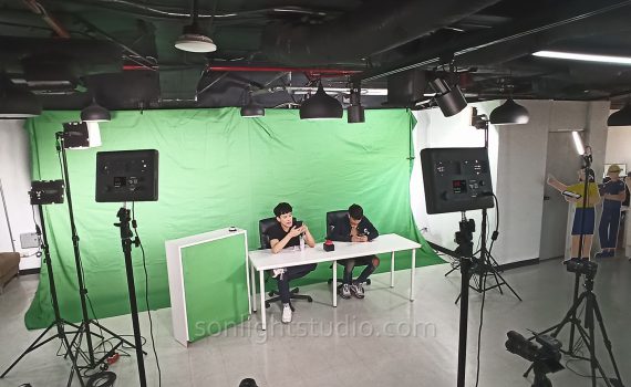 Sonlightstudio ยินดีให้บริการ เช่าฉาก limbo ผ้าเขียว และอุปกรณ์ถ่ายทำสำหรับงานหลากหลายประเภท ล่าสุดเราได้มีโอกาสให้บริการอุปกรณ์สำหรับถ่ายทำรายการ Talkshow ที่อาคารวอลล์สตรีท ทาวเวอร์ สุรวงศ์ โดยลูกค้ามีความต้องการที่จะใช้เทคนิค Chroma Key เพื่อนำกราฟิกมาใส่แทนที่ฉากหลังในขั้นตอนการตัดต่อ ทีมงานจึงได้แนะนำและจัดเตรียมอุปกรณ์ที่เหมาะสมเพื่อให้ได้ผลงานที่มีคุณภาพสูงสุด ความต้องการของลูกค้า: ฉากหลัง Chroma Key สำหรับรายการ Talkshow ลูกค้าต้องการถ่ายทำรายการ Talkshow ที่มีผู้ร่วมรายการ 3 คน โดยมีฉากหลังเป็นสีเขียวสำหรับทำ Chroma Key เพื่อใช้ในขั้นตอนการตัดต่อและนำไปเผยแพร่ในสื่อออนไลน์ ซึ่งการถ่ายทำในครั้งนี้ต้องการฉากที่มีขนาดกว้างพอที่จะครอบคลุมผู้ร่วมรายการทั้ง 3 คนในเฟรมเดียวกันได้อย่างเหมาะสม อุปกรณ์ที่ลูกค้าเช่าไป: ฉากผ้าเขียวและไฟต่อเนื่อง เพื่อตอบสนองความต้องการดังกล่าว ทีมงานจึงได้จัดชุดอุปกรณ์ที่ครบครัน ประกอบด้วย: การจัดเซ็ตอุปกรณ์และการแก้ปัญหาเฉพาะหน้า การติดตั้งฉากผ้าเขียวขนาดใหญ่ต้องใช้ความประณีต โดยเฉพาะการขึงผ้าให้ตึงที่สุดเท่าที่จะทำได้เพื่อลดรอยยับและรอยพับ ซึ่งเป็นปัญหาปกติของฉากผ้า โครงขาตั้งแบบยืดหยุ่นได้ช่วยให้สามารถขึงผ้าได้อย่างเหมาะสม อย่างไรก็ตาม ด้วยข้อจำกัดของโครงฉากที่มีความสูง 2.5 เมตร ขณะที่ผ้ามีความสูง 3 เมตร ทำให้มีผ้าส่วนหนึ่งอยู่บนพื้นเพียง 0.5 เมตร ซึ่งไม่เพียงพอที่จะลากยาวออกมาถึงจุดที่ผู้ร่วมรายการยืนอยู่ได้ เพื่อลดปัญหาเรื่องรอยยับและเงา ทีมงานได้แนะนำให้ลูกค้า เช่าฉาก limbo ผ้าเขียว เพิ่มเติมด้วยชุดไฟต่อเนื่อง LED 100W จำนวน 4 ดวง เพื่อใช้ส่องฉากโดยเฉพาะ โดยไฟจะช่วยเพิ่มความสว่างให้กับฉากหลัง และช่วยลบรอยเงาที่เกิดจากความไม่เรียบของผ้าได้ในระดับหนึ่ง แม้ว่ารอยยับและเงาของคนจะยังคงปรากฏบนจอภาพของกล้อง แต่เมื่อนำไฟล์ไปเข้าโปรแกรมตัดต่อและปรับค่าโทนสีเขียวให้กว้างขึ้น ก็จะสามารถลบรอยเหล่านี้ออกไปได้อย่างสมบูรณ์ ข้อควรรู้อีกประการในการใช้ฉาก Green Screen คือผู้ร่วมรายการต้องไม่มีเสื้อผ้าหรือเครื่องประดับที่มีสีเขียว เพื่อป้องกันไม่ให้โปรแกรมตัดต่อลบส่วนนั้นออกไปพร้อมกับฉากหลัง ซึ่งเป็นเทคนิคที่สำคัญเพื่อให้ได้ผลลัพธ์การทำ Chroma Key ที่ไร้ที่ติ